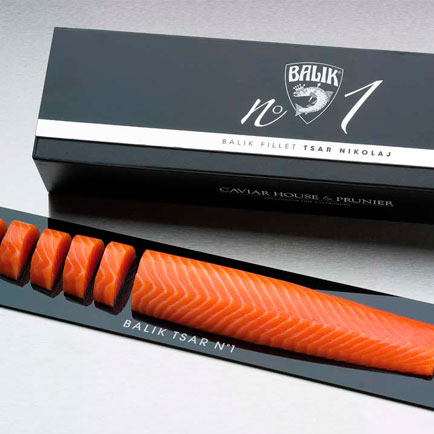 Die sorgfältige Zubereitung der aus der Rückenpartie des Lachses gewählten Filets lässt die Tradition des Zarenhofes wieder aufleben. Seit seiner Wiederentdeckung gilt dieses Verfahren als Garant kulinarischer Meisterwerke: Die vollständige Seitenpartie – die Classic Side – des Lachses wird nach der Balik-Methode mild geräuchert. Nach dem sorgfältigen Filetieren ist jedes Gramm des Balik Fillet Tsar Nikolaj eine wahre Gaumenfreude! Wir empfehlen, das Balik Fillet Tsar Nikolaj vertikal in Medaillons von ungefähr einem Zentimeter Breite zu schneiden. So genießen Sie diesen köstlichen Balik Lachs und seinen unerreichten Geschmack am besten. Die etwas kleinere Portion aus dem Filet „Original Cut“ ist mit ihrer geringeren Grammatur der perfekte Genuss für zwei Personen!